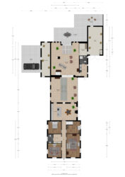 De voormalige hooiberg is volledig bij de woning betrokken en vormt een tweede, zelfstandige woonmodule. Een indrukwekkende living met glazen pui staat in directe verbinding met het grote mediterrane terras en het verwarmde zwembad. De hooiberg beschikt verder over een tweede volledig uitgeruste keuken, een badkamer, berging en een slaapverdieping op de etage.