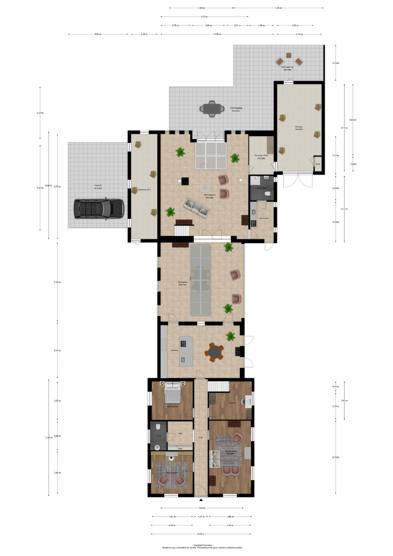 De fraaie oprijlaan voorziet in parkeergelegenheid en toegang naar een dubbele carport, schuur en de tuin. De tuin is een oase van rust. De zuidligging, volwassen groenstructuren en de overdekte terrassen maken buitenleven hier vanzelfsprekend. Het verwarmde zwembad, royale overdekte terras met lange eettafel, meerdere zithoeken in zon en schaduw, vijverpartij en een gebinten overkapping.