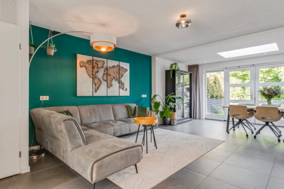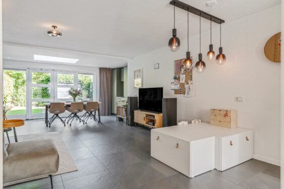 - Ruime, lichte woonkamer met lichtstraat en dubbele tuindeuren