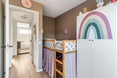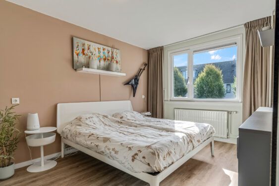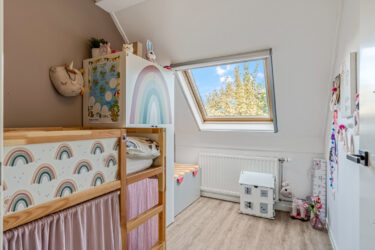 1e verdieping: De overloop biedt toegang tot drie comfortabele slaapkamers. De ouderslaapkamer is gelegen aan de straatzijde van de woning. Aan de tuinzijde bevinden zich twee slaapkamers, beide voorzien van een dakvenster waardoor veel daglicht binnenvalt.