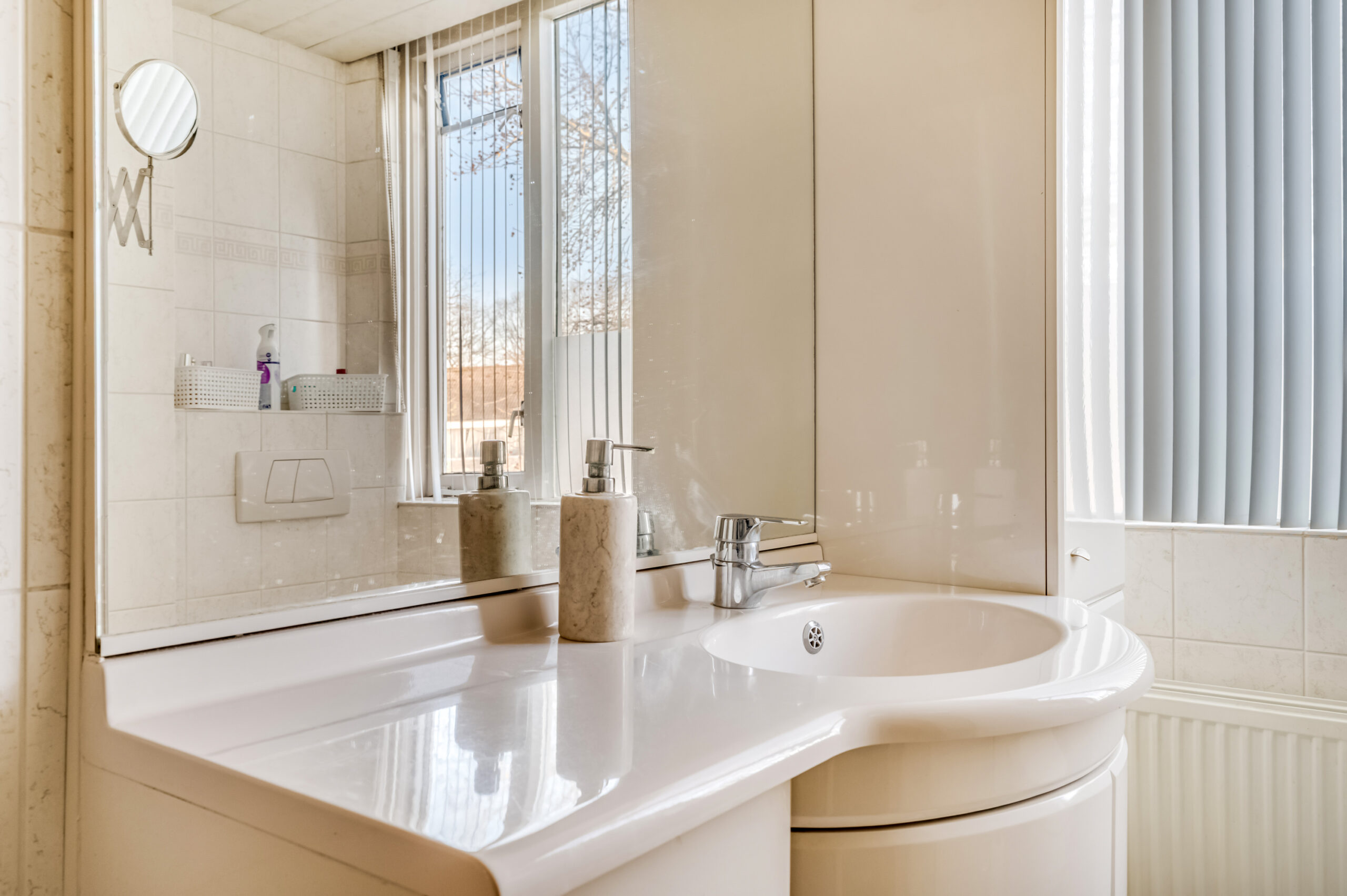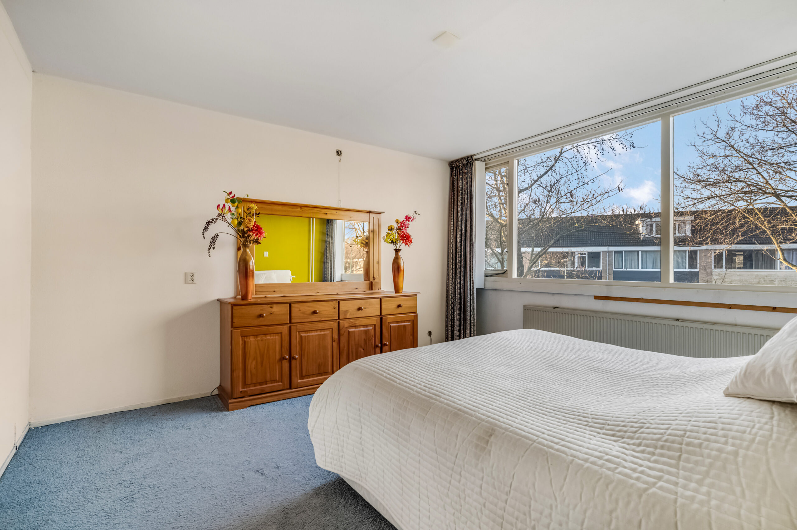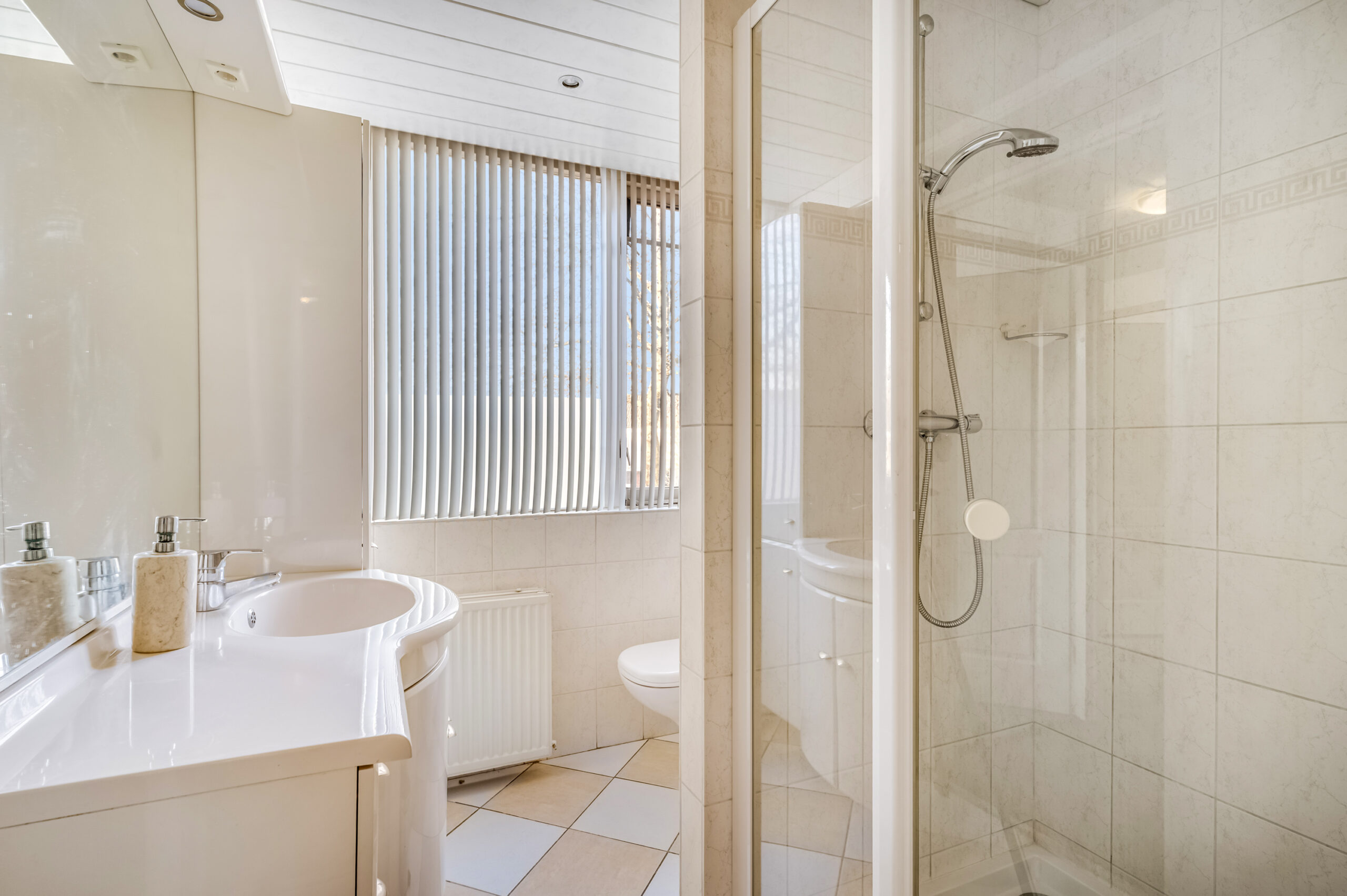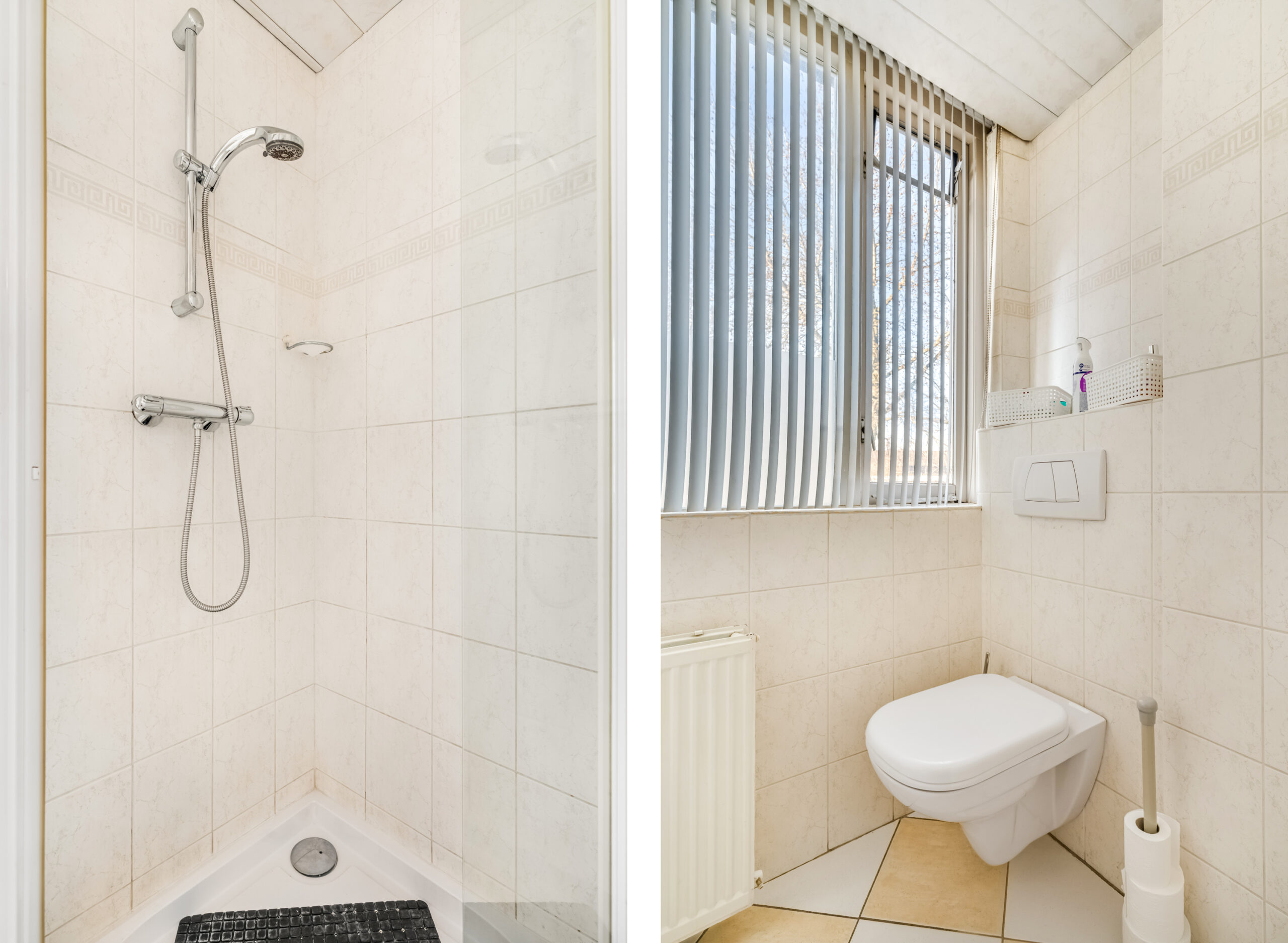 1e verdieping: overloop met afgesloten deur naar trapopgang 2e verdieping. Op deze verdieping zijn 3 ruime slaapkamers, waarvan 2 aan de achterzijde en 1 aan de voorzijde met inloop kledingkast. De geheel betegelde badkamer heeft een wastafelmeubel met spiegel en op opbergruimte, douchecabine met thermostaatkraan en toilet. De badkamer heeft een plafond voorzien van inbouwspots.