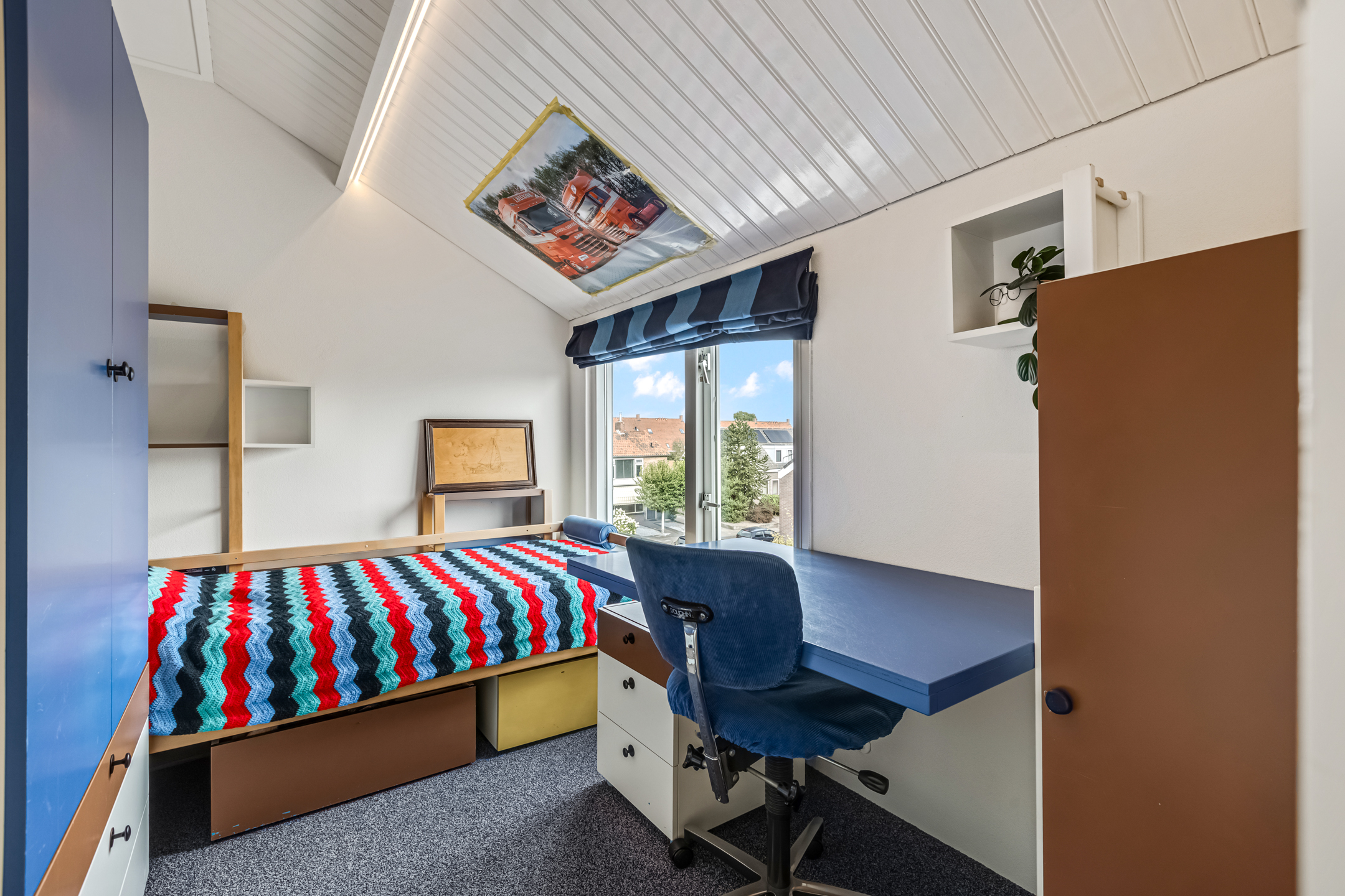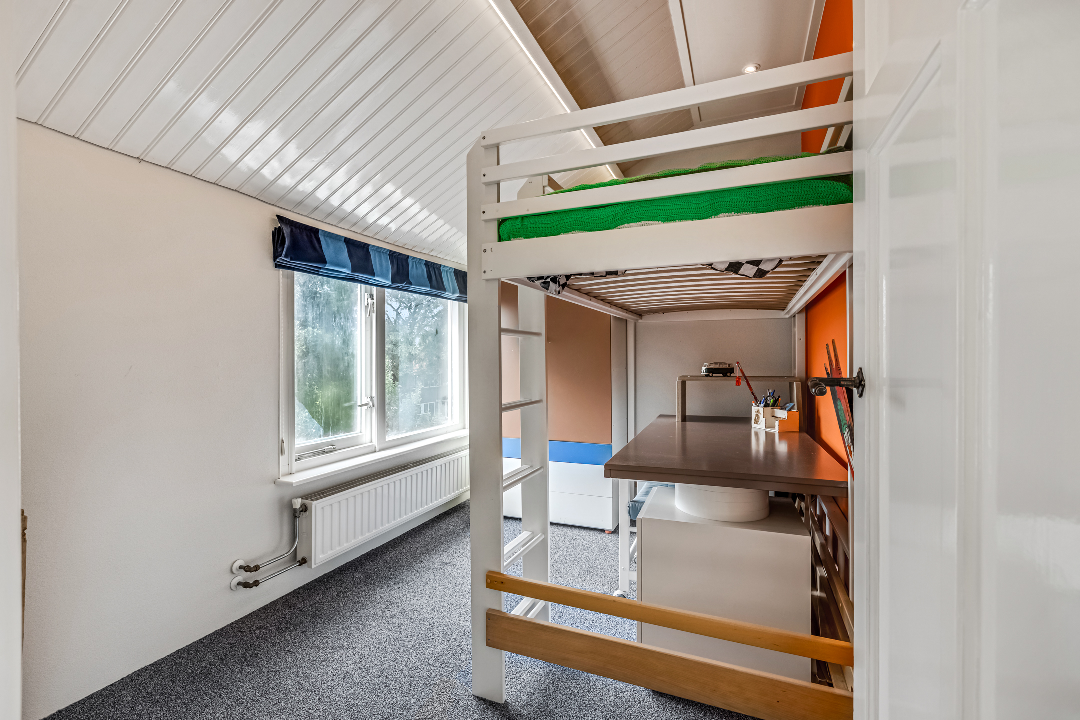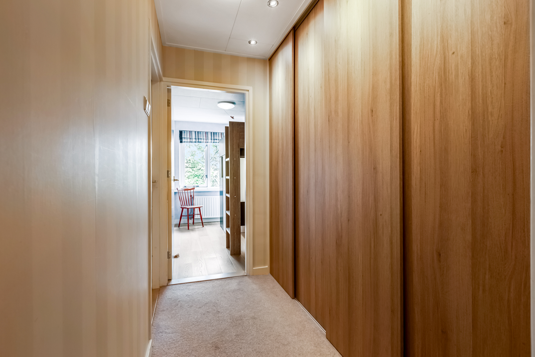 Overloop met trapopgang naar de 2e verdieping, separate toiletruimte. De geheel betegelde badkamer heeft een raam, bad/douchecombinatie met glazen scherm voorzien van thermostaatkraan en wastafel met spiegelkast. Aansluitend is er een slaapkamer aan de straatzijde bereikbaar en een prettige werkkamer met lichttube. 2e overloop met vaste kastenwand met aansluitend nog eens twee slaapkamers.