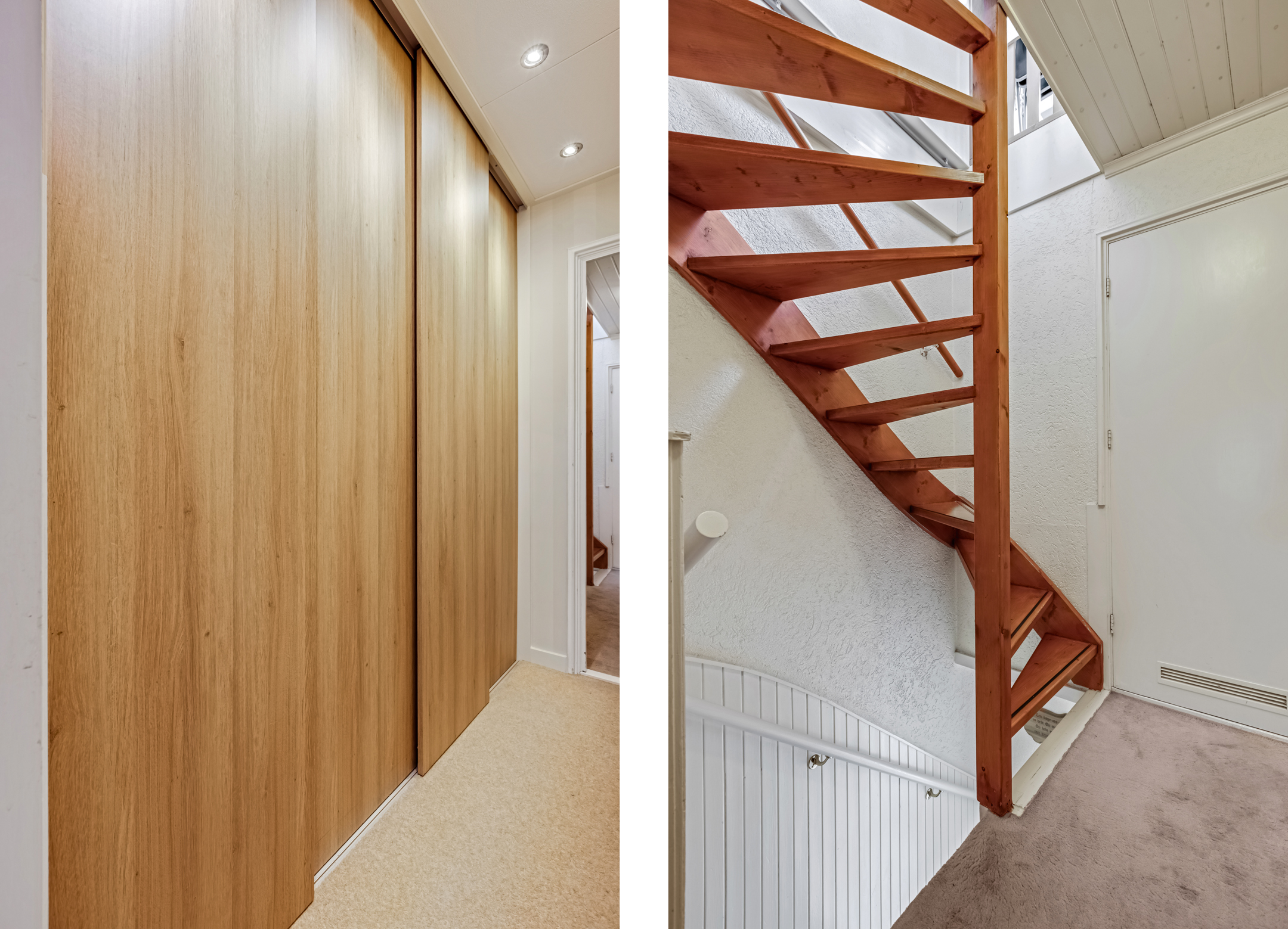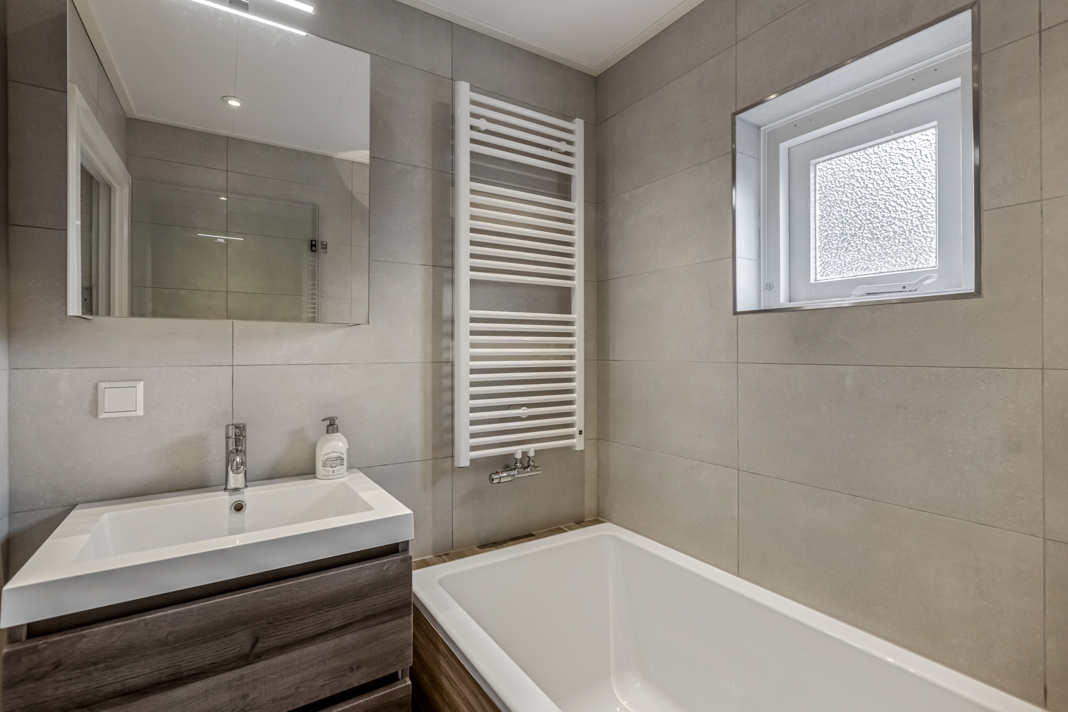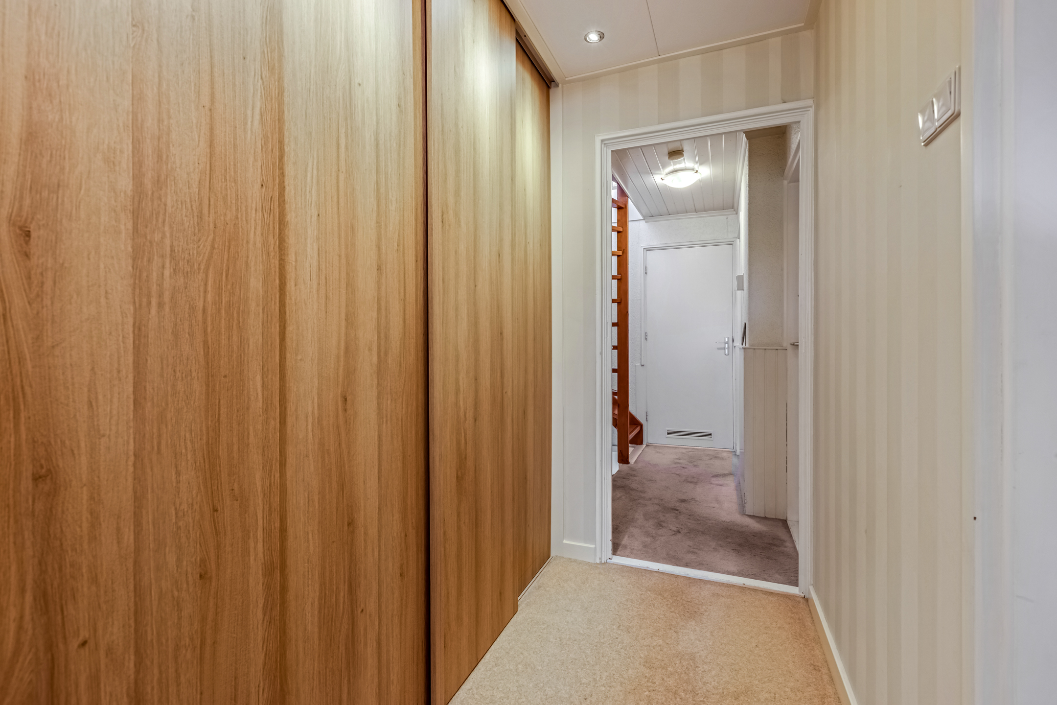 Overloop met trapopgang naar de 2e verdieping, separate toiletruimte. De geheel betegelde badkamer heeft een raam, bad/douchecombinatie met glazen scherm voorzien van thermostaatkraan en wastafel met spiegelkast. Aansluitend is er een slaapkamer aan de straatzijde bereikbaar en een prettige werkkamer met lichttube. 2e overloop met vaste kastenwand met aansluitend nog eens twee slaapkamers.