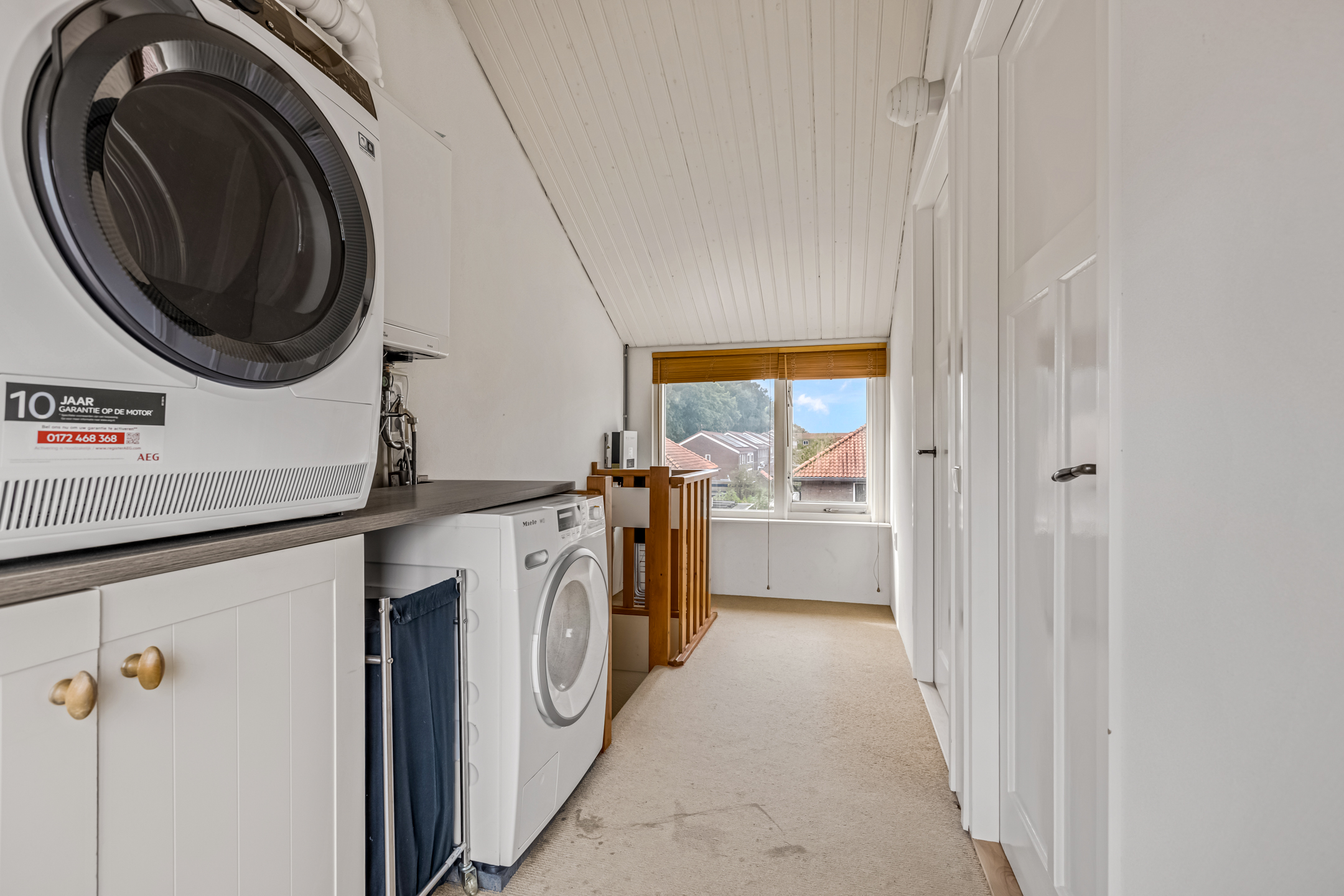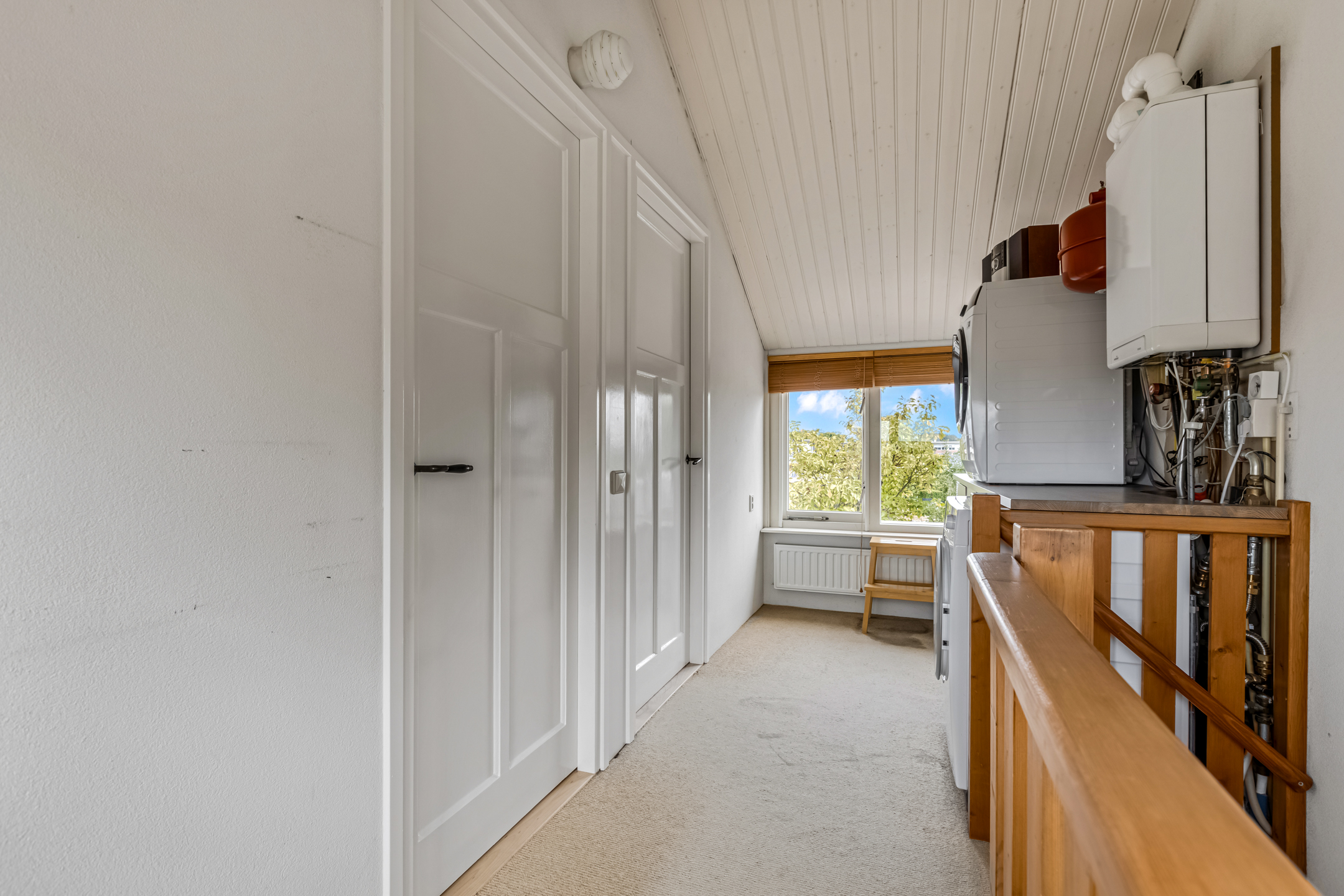 Overloop met CV-opstelling en werkblad met daaronder verwerkt de was- en droog aansluitingen. Op deze verdieping zijn nog eens twee extra slaapkamers gerealiseerd.