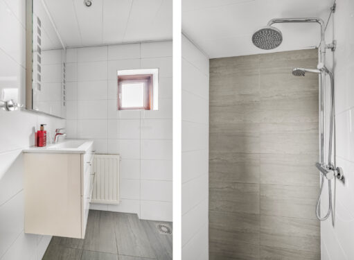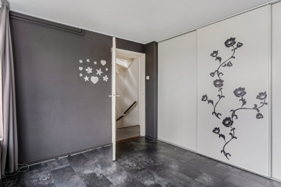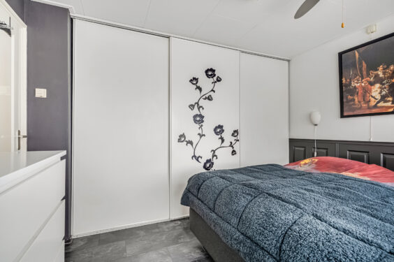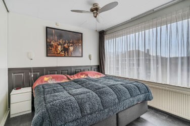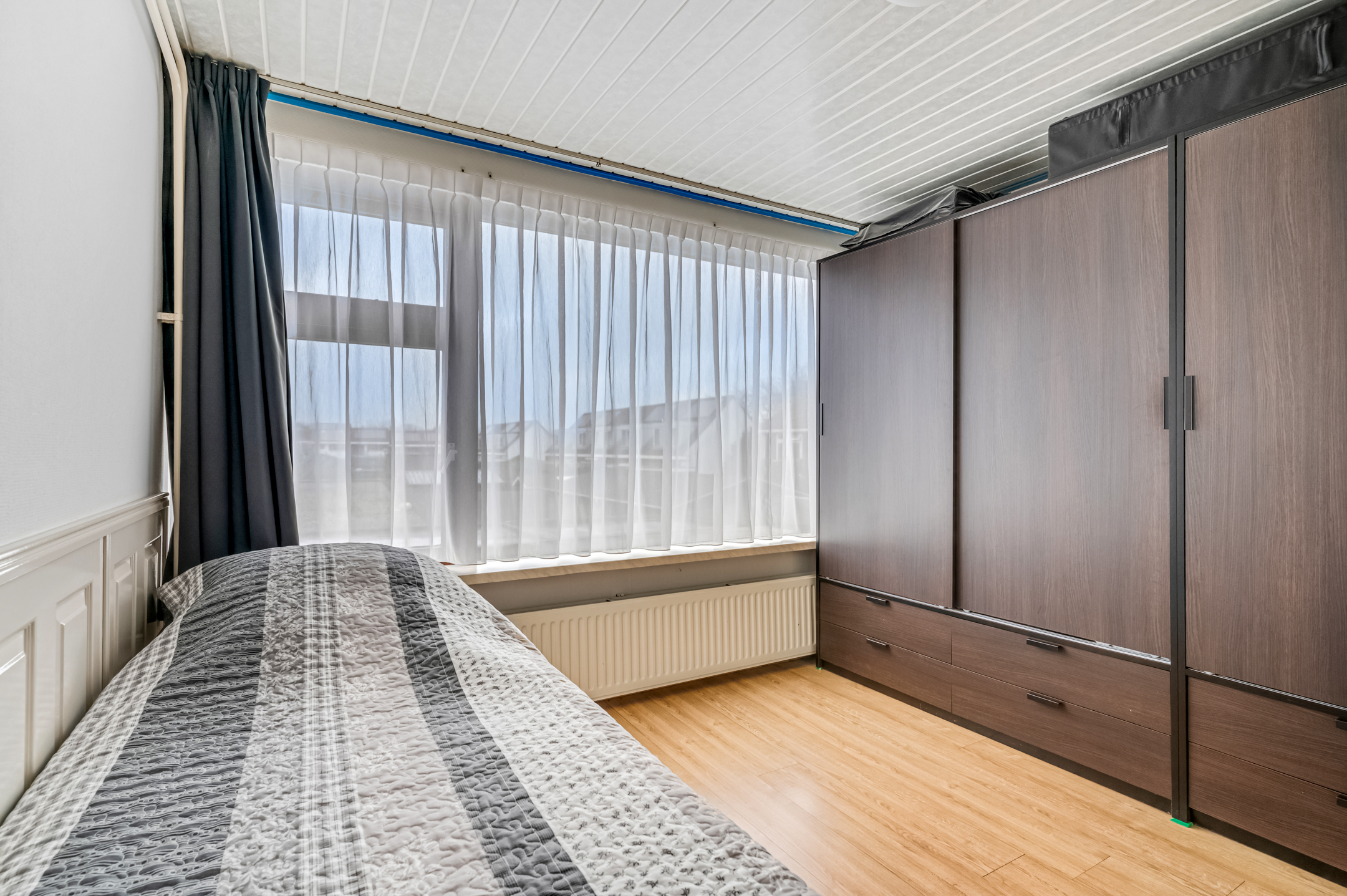 1e verdieping: overloop met trapopgang naar de 2e verdieping en separate toiletruimte. Op deze verdieping zijn 3 slaapkamers aanwezig. De ouderslaapkamer ligt aan de voorzijde en heeft een elektrisch bedienbaar rolluik met kast voorzien van schuifdeuren. De overige 2 slaapkamers bevinden zich aan de achterzijde van de woning. De badkamer is voorzien van een inloopdouche (met thermostaatkraan), wastafelmeubel met spiegel en een raam.